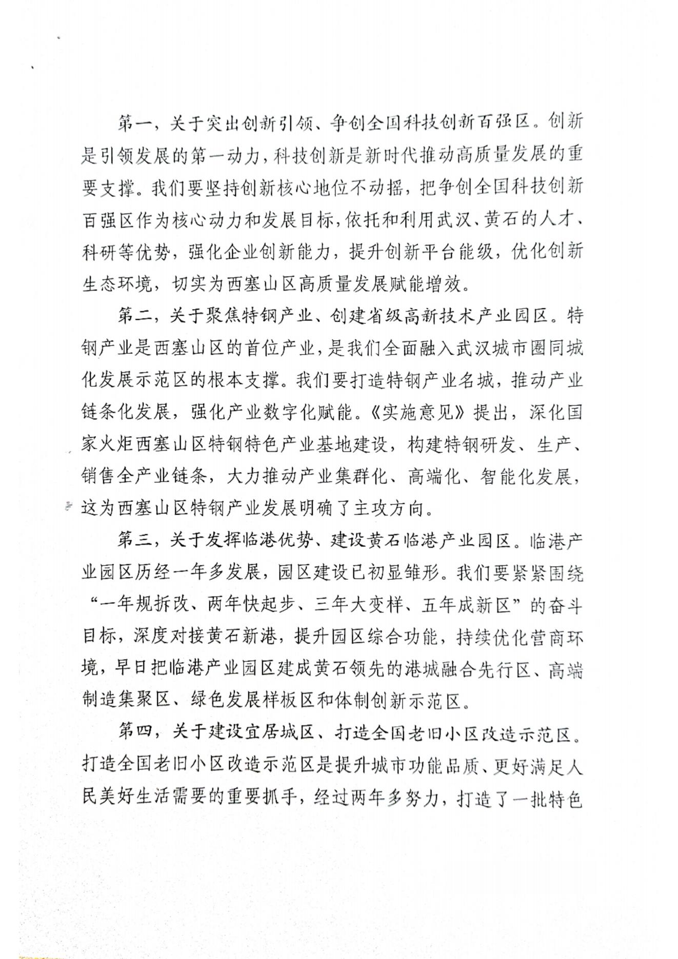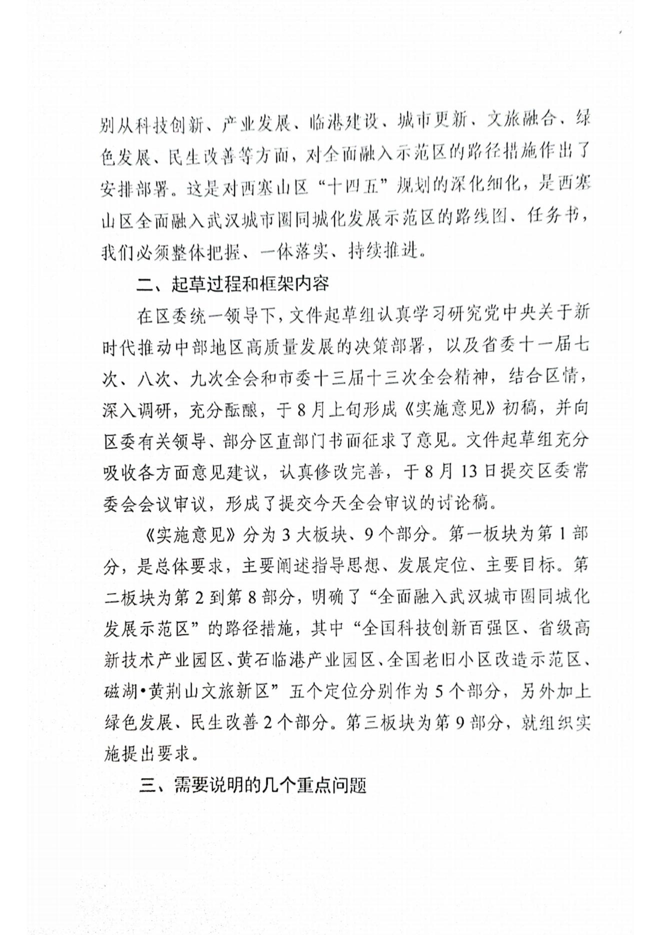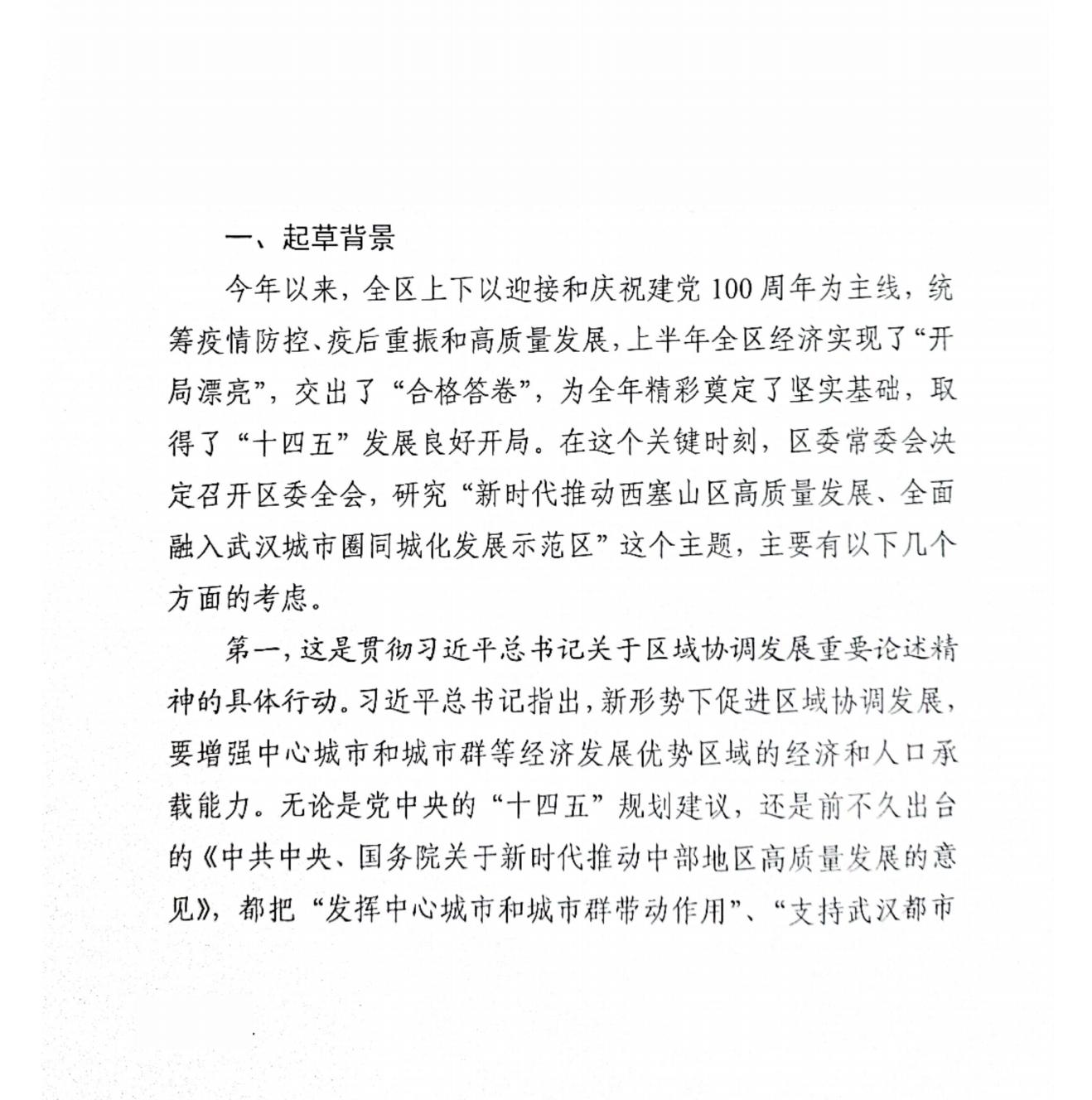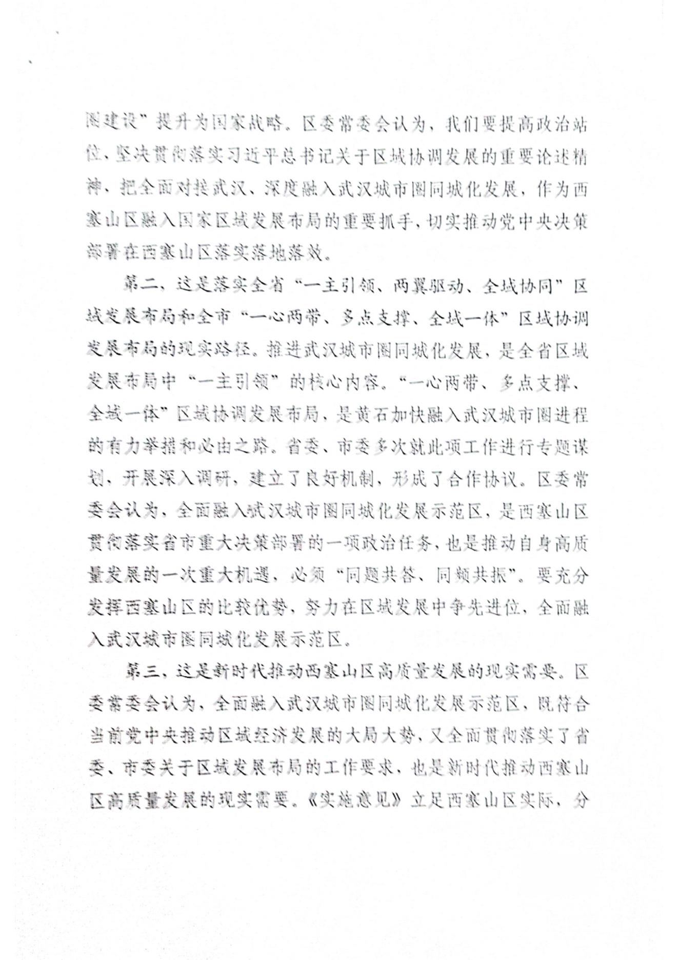 關于新時代推動西塞山區高質量發展全面融入武漢城市圈同城化發展示范區的實施意見