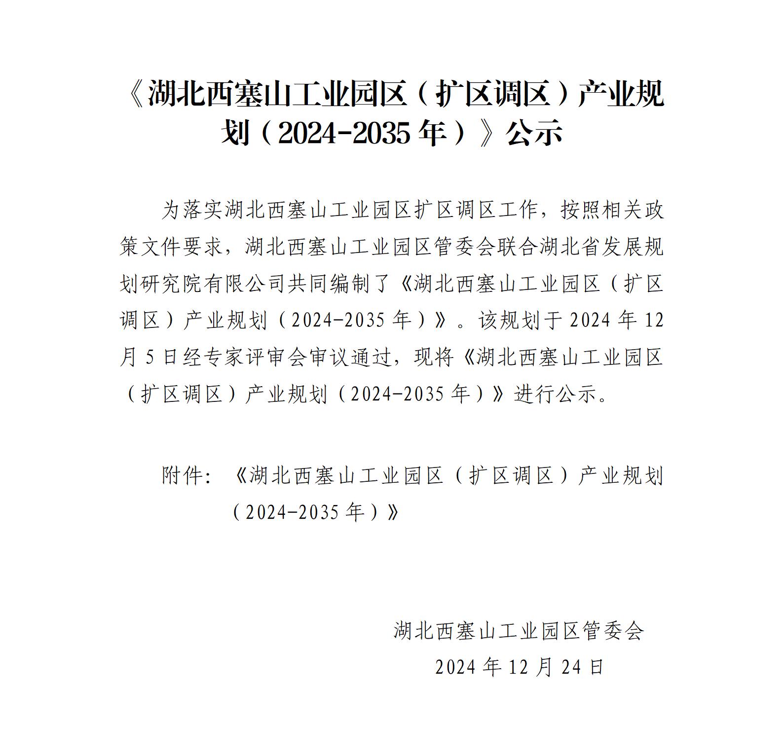 《湖北西塞山工業園區(擴區調區)產業規劃(2024-2035年)》公示